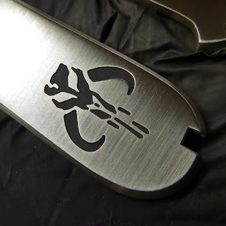 Special set of scales with logo of Polish Fighter Squadron No. 303. I like how the orange peel finish is contrasting with the beadblasted engravings. I will for sure use this finish combination more often. Note that it was engraved without use of laser, just a CNC milling machine